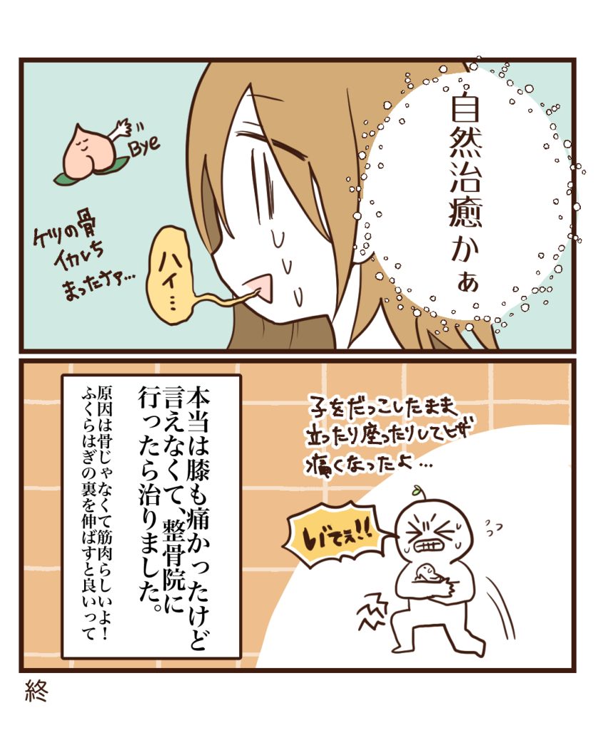 整骨院で治してもらえるんですこれ!痛いのは骨なのにふくらはぎを伸ばすと治るんです不思議。私は骨盤矯正と膝の二つで3ヶ月くらい通ってたら